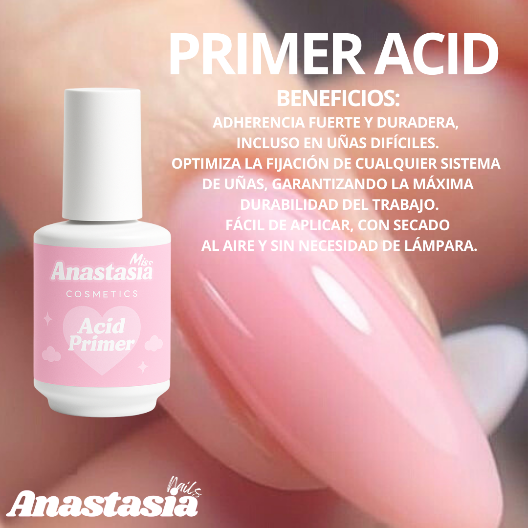 • PRIMER 15ML →PREPARA LA UÑA PERFECTAMENTE Y ASEGURA QUE EL ACRÍLICO DURE MÁS TIEMPO.